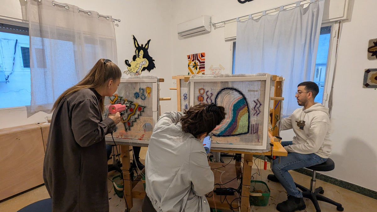 הסדנאות שלנו מתוכננות לפי זמנים וגדלים מותאמים. אנחנו מוודאות שכל משתתף מסיים את שלב הטאפטינג בסטודיו בתוך מסגרת הזמן שהגדרנו. היה ומישהו לא סיים, הצוות שלנו מסיים את השטיח עבורו.